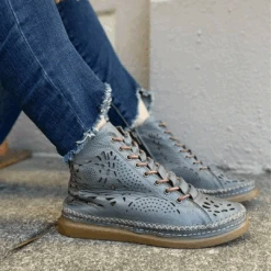 Wherever you’re headed this season let the artisan inspired women’s boots by Anesha take you there in style. This adorable short lace up bootie features laser cut detailing throughout with handcrafted moccasin stitch toe construction. Made in Turkey, these all-leather boots feature a leather lined cushioned insole and ultra-flexible and shock absorbent rubber outsole for all day comfort.
