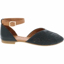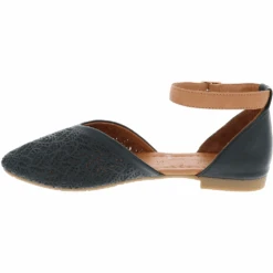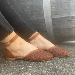 The Alejandra from Anesha is a chic two-piece flat that features a sleek printed leather pointed toe, with an easily adjustable ankle strap design. You’re going to love the versatility and unique styling details. With a leather wrapped soft cushion insole and flexible shock absorbent rubber outsole, you’ll be hitting the streets in stylish comfort.