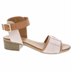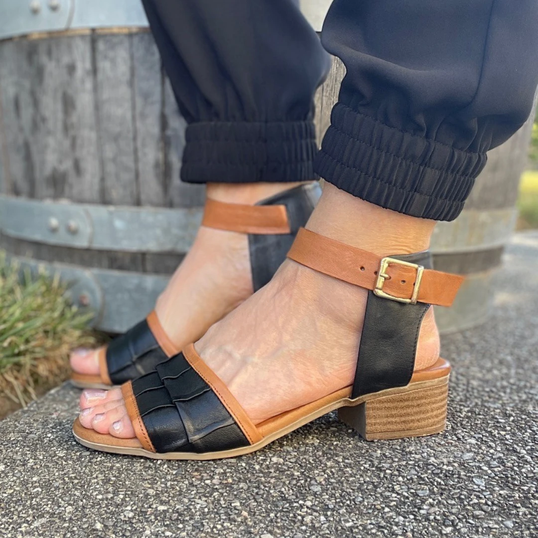 Chic details make this two-piece sandal the perfect addition to just about any spring closet. With its versatile styling you can go from work to play without missing a beat on comfort or fashion. The leather wrapped soft cushion insole and flexible shock absorbent rubber outsole sits comfortably on a stylish stacked heel.