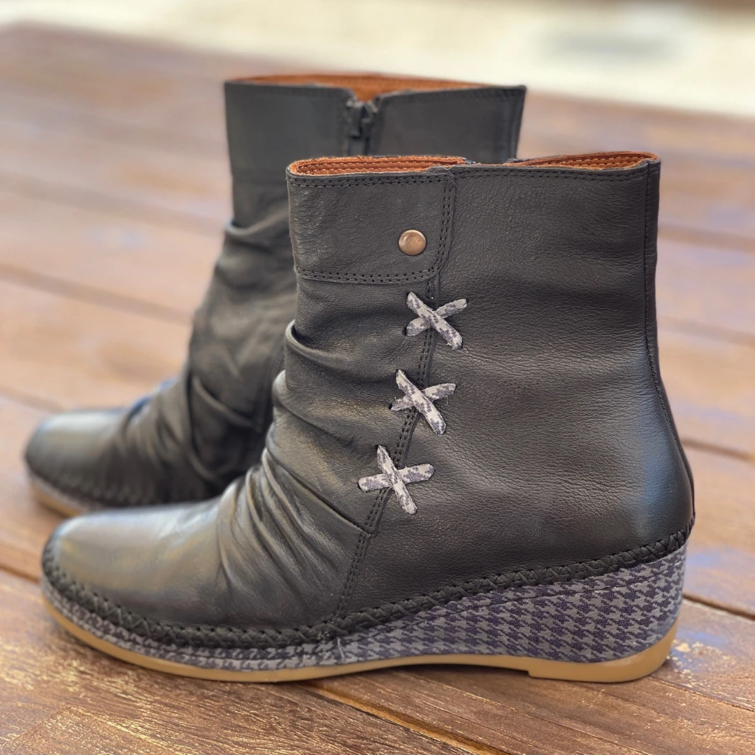 Soft supple leather and houndstooth detailing make this stylish women’s boot the perfect blend of sophistication and comfort. With artisan hand stitching and an easy side zip design, this lightweight boot can easily be dressed up for just about any occasion.