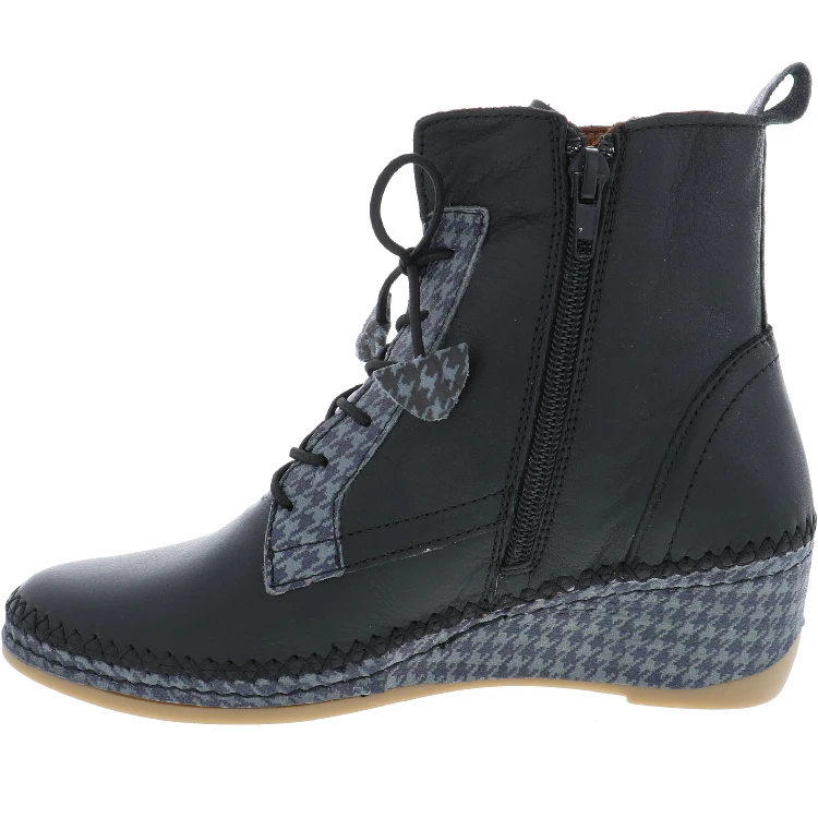 Anything but basic, the Como by Anesha is the perfect blend of function and fashion. This stylish women’s lace up boot features a side zip design for easy wearability. The fashionable black and grey houndstooth detailing makes this boot stand out in all the right ways.