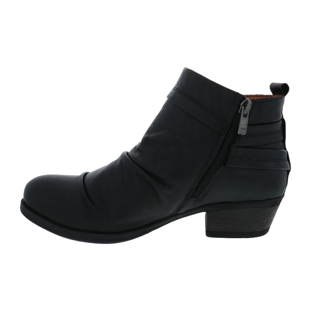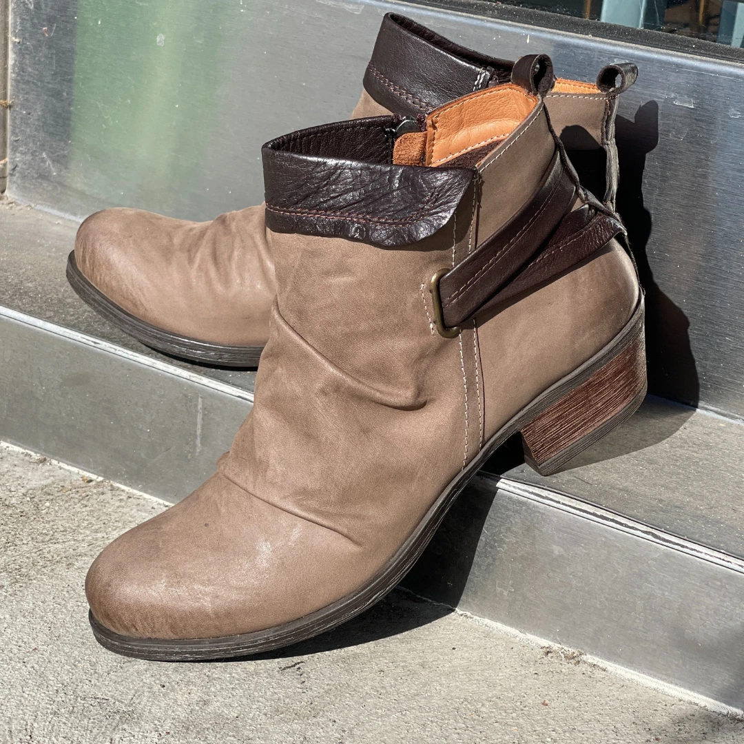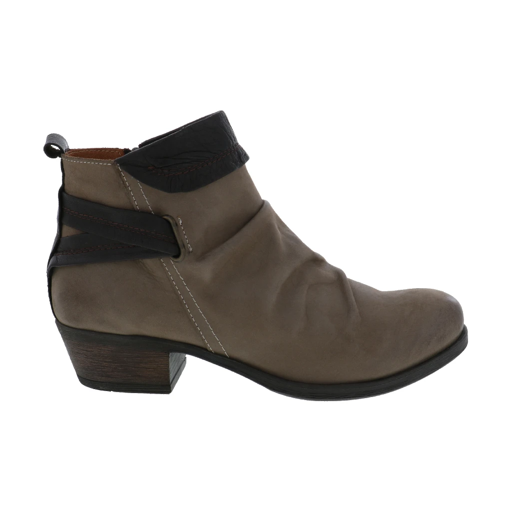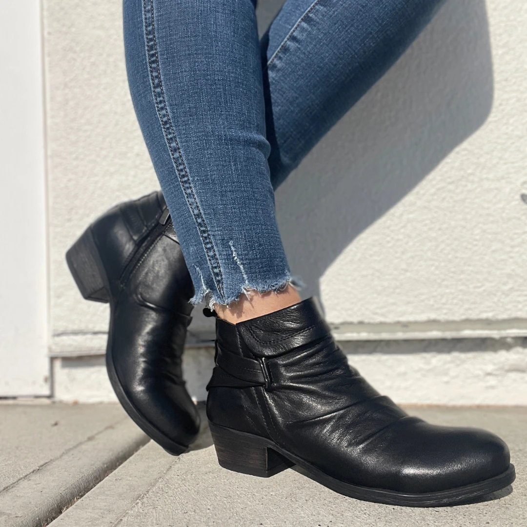 Sophistication with an edge, meet the Gemma women’s short boot by Anesha. With pleating throughout and two-tone leather detailing, this stylish women’s boot features a comfort stacked heel and durable rubber outsole. The leather lined footbed and soft fabric lining give these boots a comfort all their own.