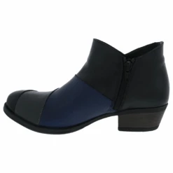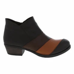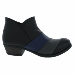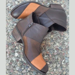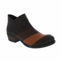 Modern sophistication with comfort features throughout makes the Gianna by Anesha a must have women’s boot. This stylish short boot features unique color blocking details with asymmetrical stitching across the toe box and instep. With a comfort stacked heel, leather lined footbed and soft fabric interior, you’ll be hitting the streets in stylish comfort.