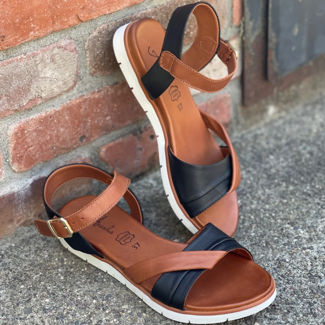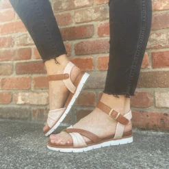 The Tyra by Anesha combines modern style with effortless comfort in this seasons must have women’s sandal. The unique leather wrapped two-strap design flatters the foot while the adjustable instep strap keeps you moving in comfort. The cork and rubber insole offers soft cushioned support, while the durable rubber outsole absorbs shock with every step.