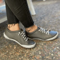 Walk this way to stylish comfort with the Vega by Anesha. This women’s slip-on sneaker inspired walking shoe features an elastic lace up design making these a breeze to get on and off. With a removable leather wrapped insole you can easily accommodate a custom orthotic. The durable rubber outsole offers a flexibility and shock absorption that helps to keep you moving forward in style.