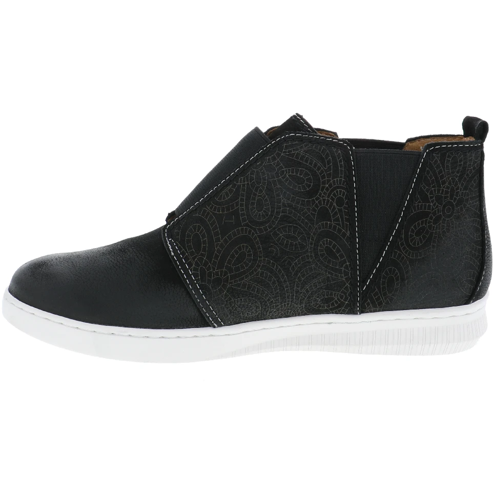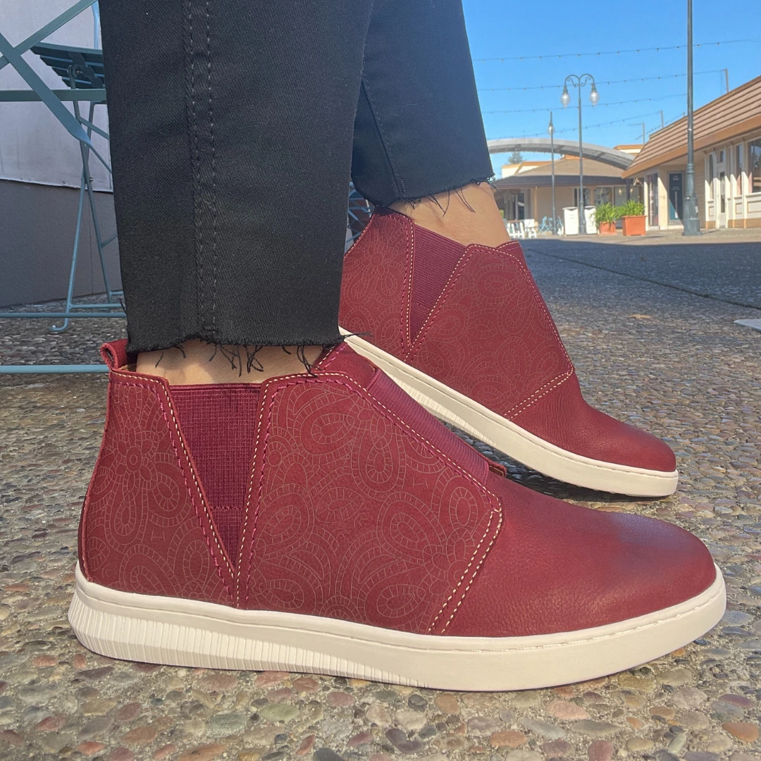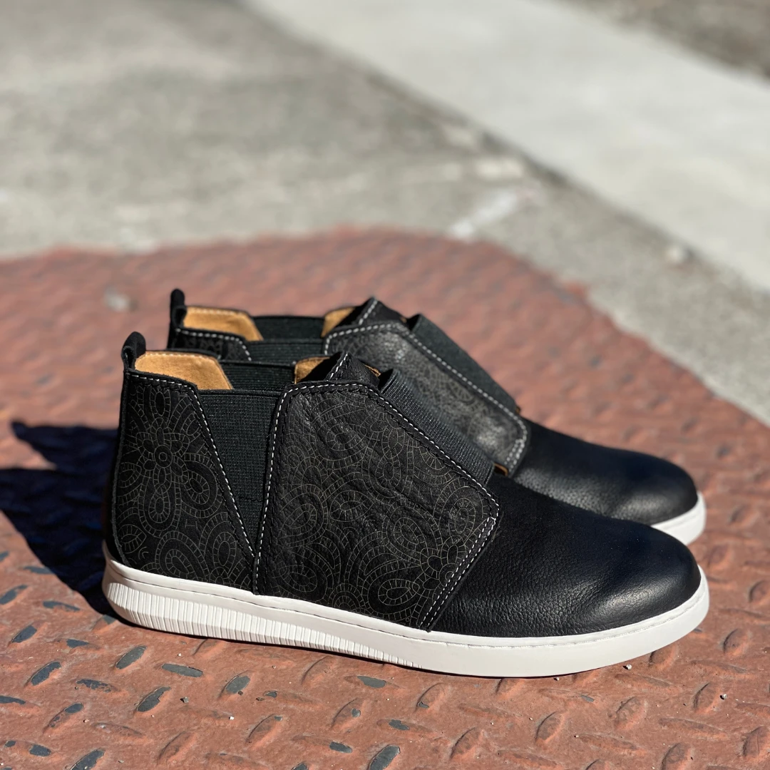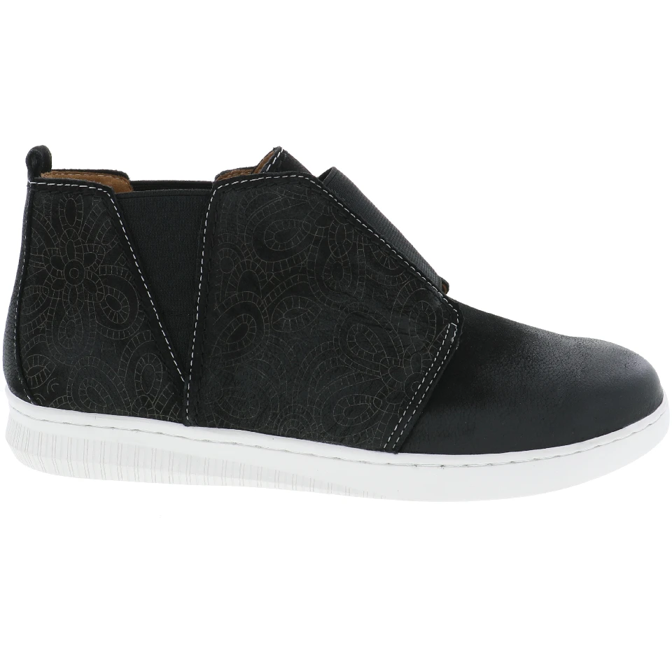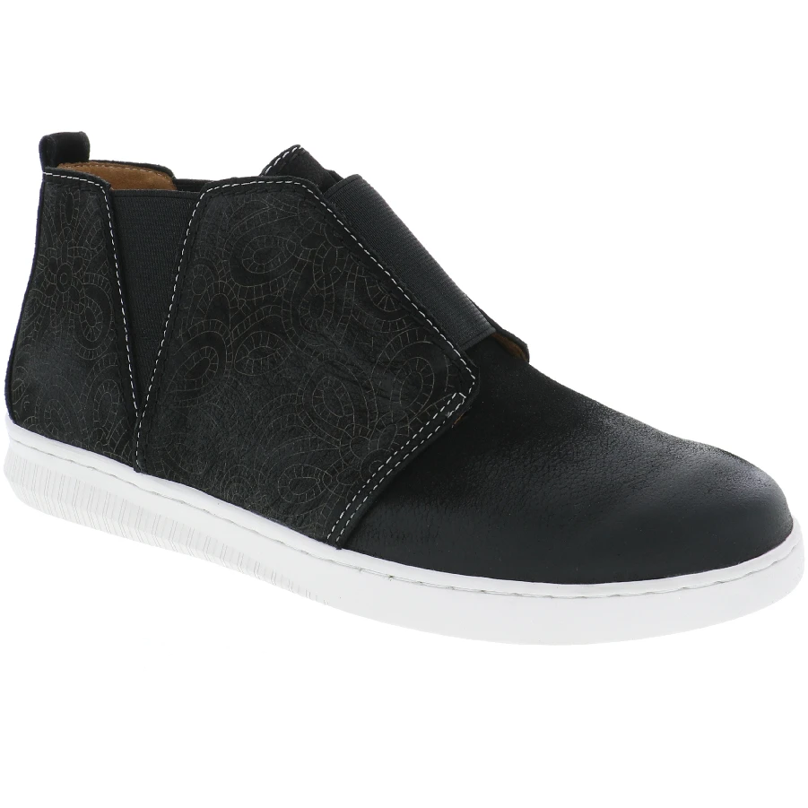 Give your foot a hug with the Bliss boot by Biza Shoes. This pull-on women’s bootie quite literally hugs the foot thanks to the triple elastic gore detailing. The removable memory foam injected cork insole supports the foot while the lightweight durable rubber outsole absorbs shock with every step. Treated with Scotchgard, you’ll rest assured knowing it’s completely water and stain resistant.