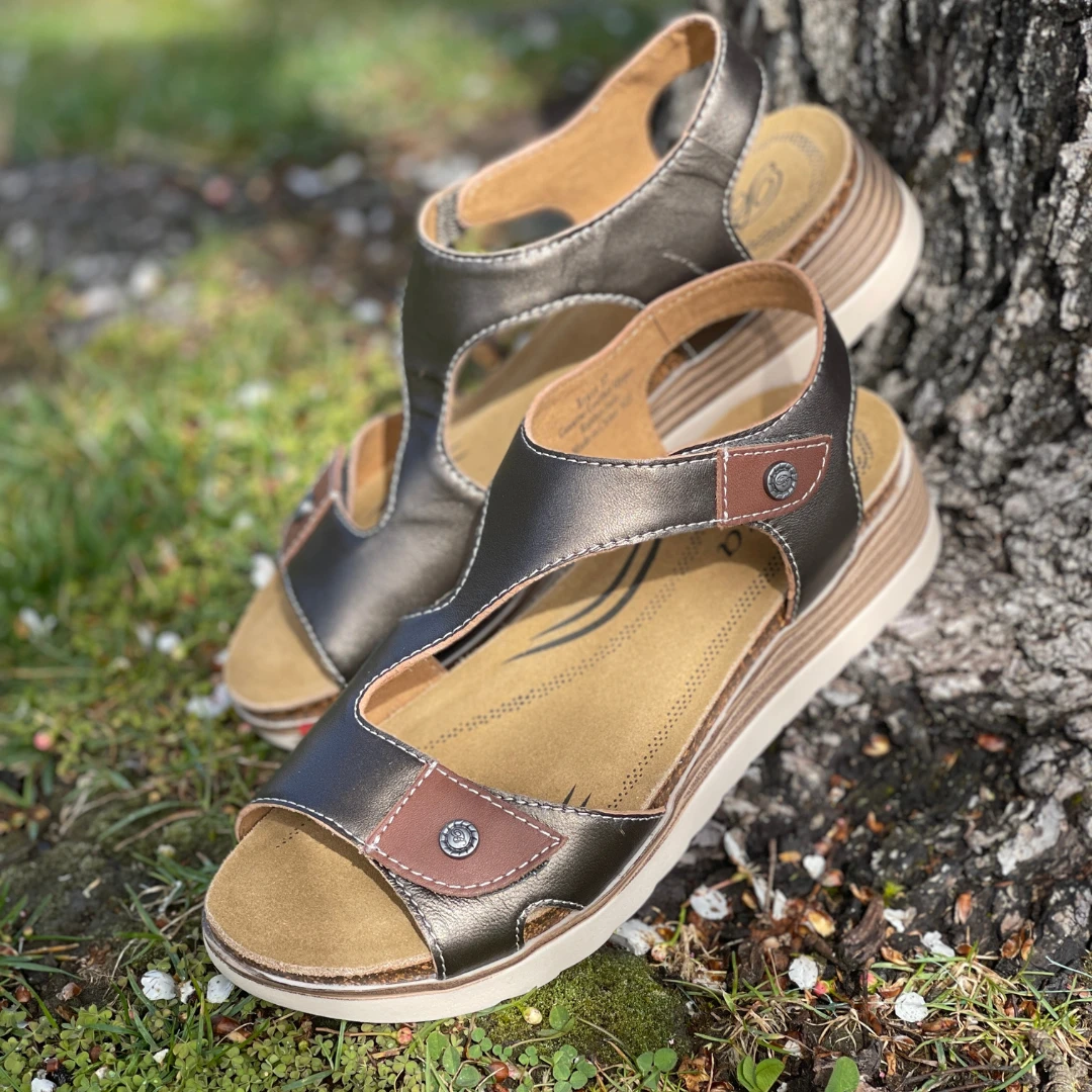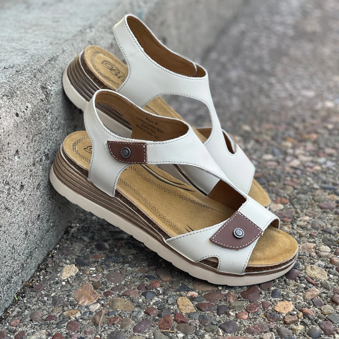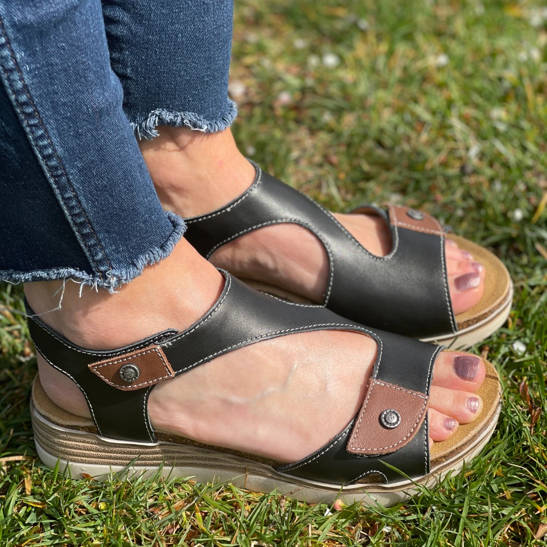 Break out of the box with Bryce, this season’s trendiest women’s walking sandal by Biza Shoes. With dual adjustable Velcro straps this style is sure to fit like it was made for you. The stylish two-tone leather uppers and platform wedge design, make these sandals stand out from the crowd. The dual density memory foam cork footbed and lightweight rubber outsole keeps moving you forward in total comfort.
