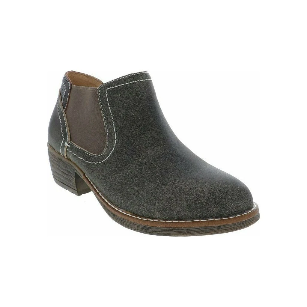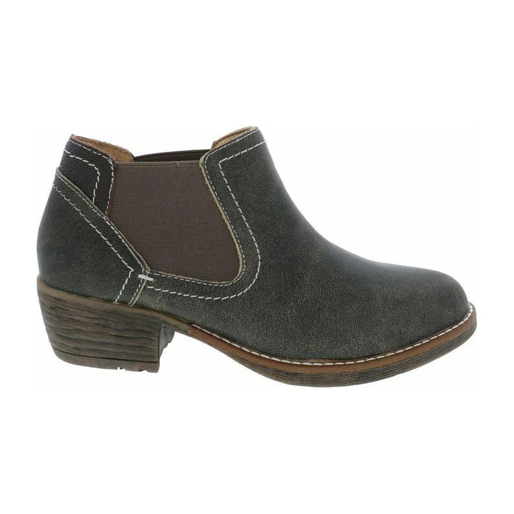 Add a little western flair with the Carson slip-on women’s bootie by Biza Shoes. This adorable double elastic gore slip-on boot features a stacked rubber heel outsole giving you the perfect amount of lift without sacrificing on comfort. The removable microfiber lined memory foam insole absorbs shock and can easily accommodate custom orthotics. The stylish textured genuine leather upper has been treated with Scotchgard, creating a water and stain resistant barrier, giving you peace of mind with every step.