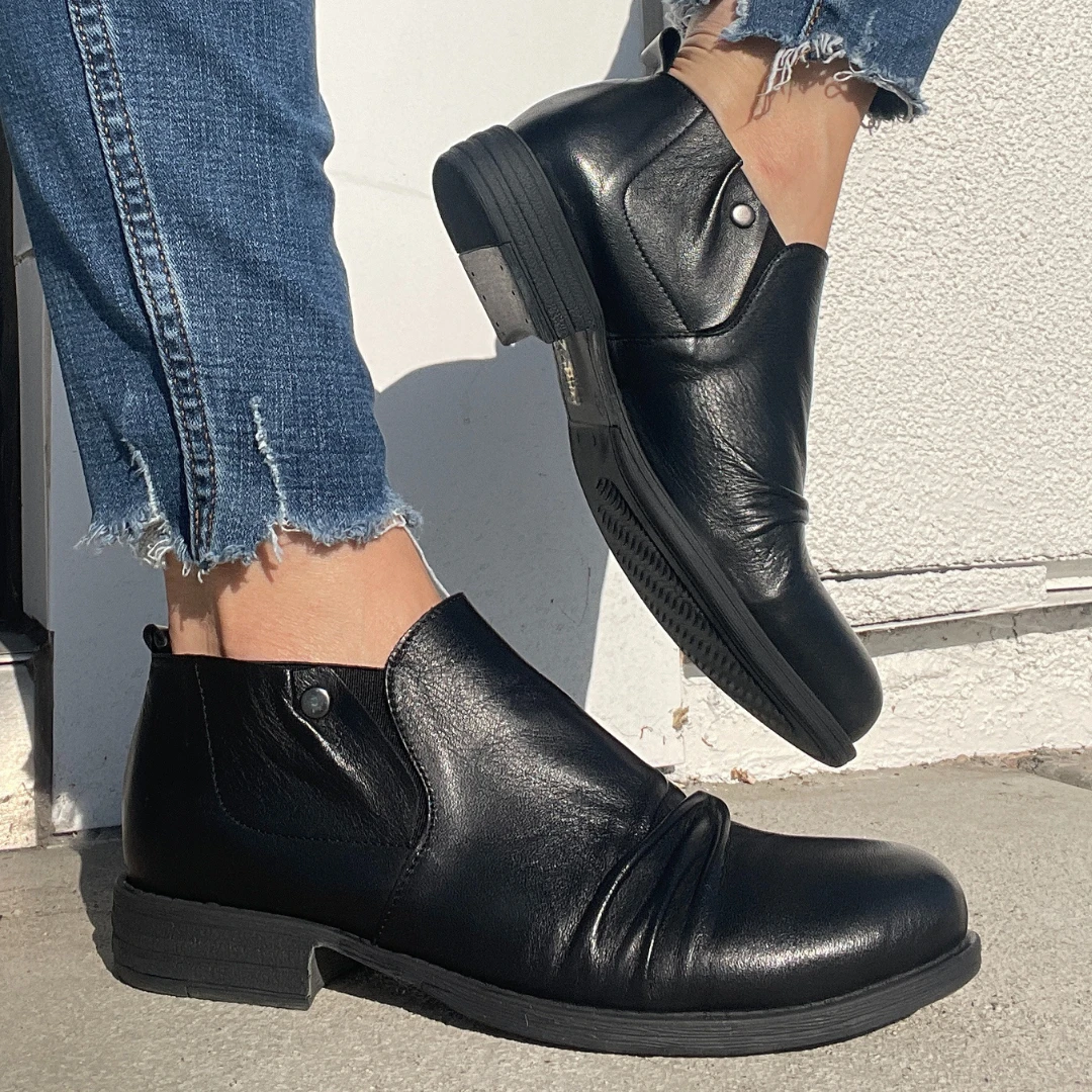 Short boot meets stylish women’s loafer with the Ellis by Biza Shoes. This easy to wear fall inspired ‘shootie’ pairs perfectly with your entire fall wardrobe from jeans to slacks, you’re going to love the versatility. With elastic gore detailing for easy on and off wearability, this genuine leather women’s shoe boosts with confidence.
