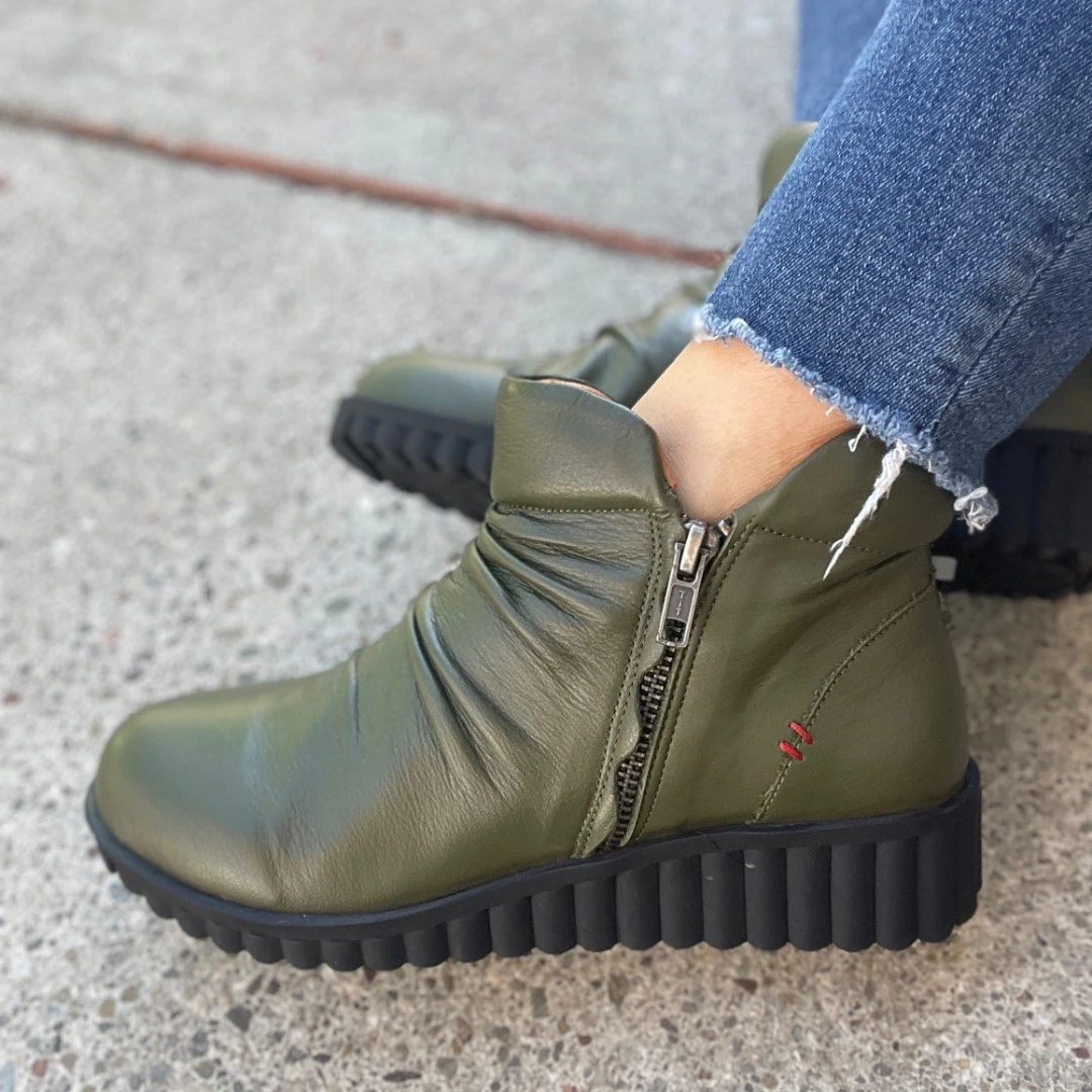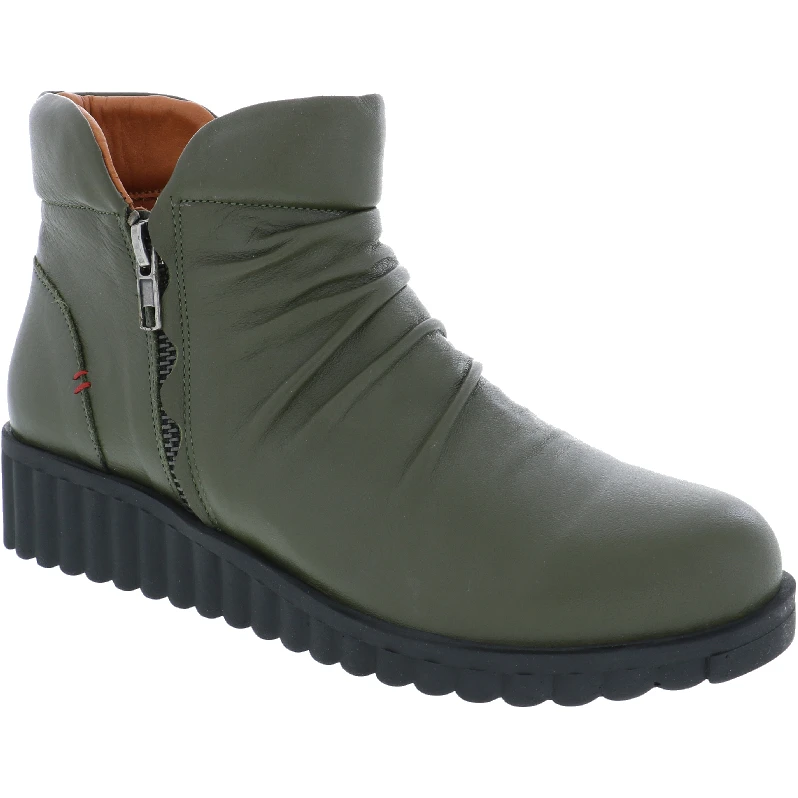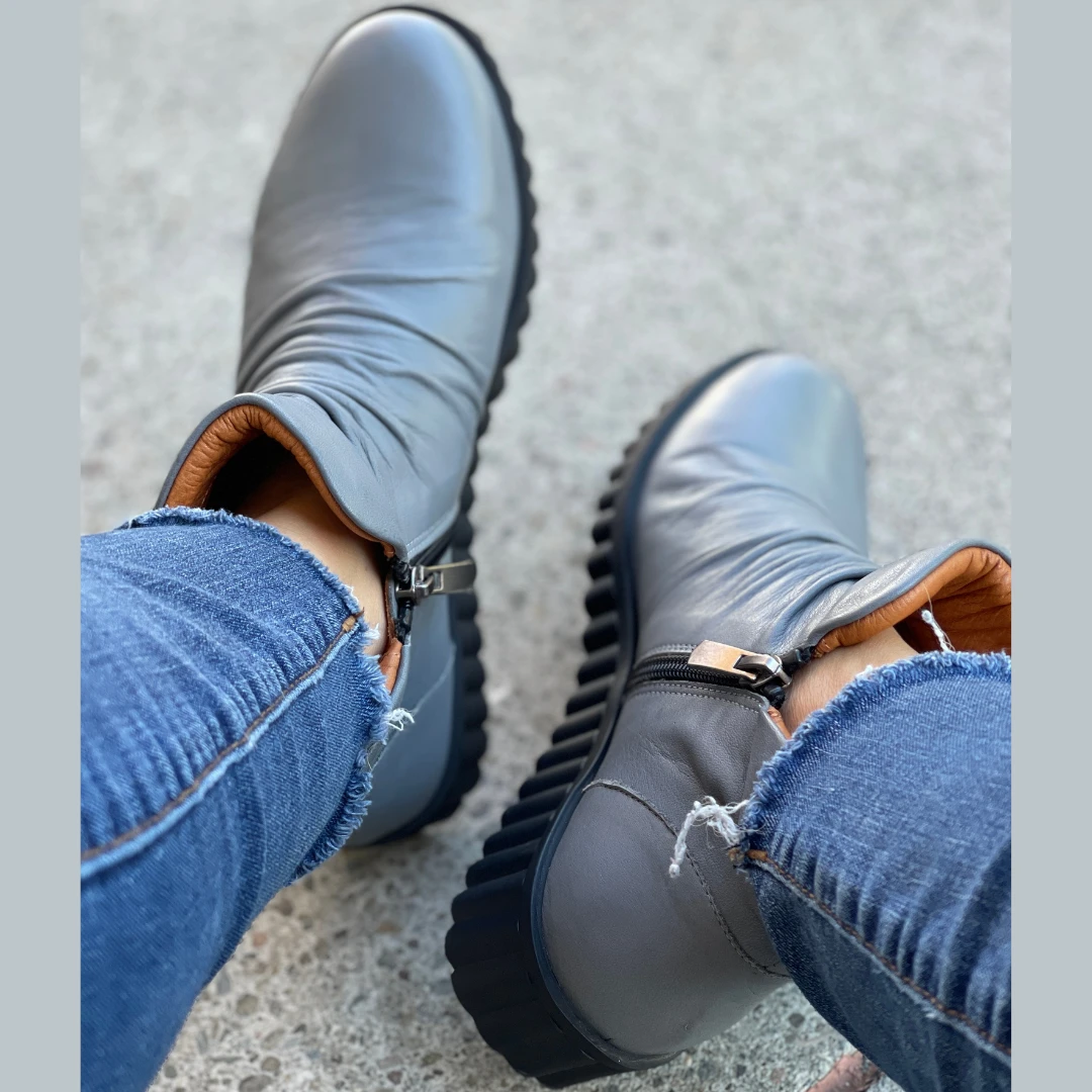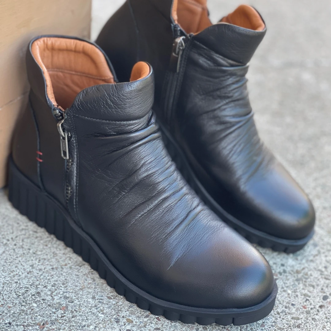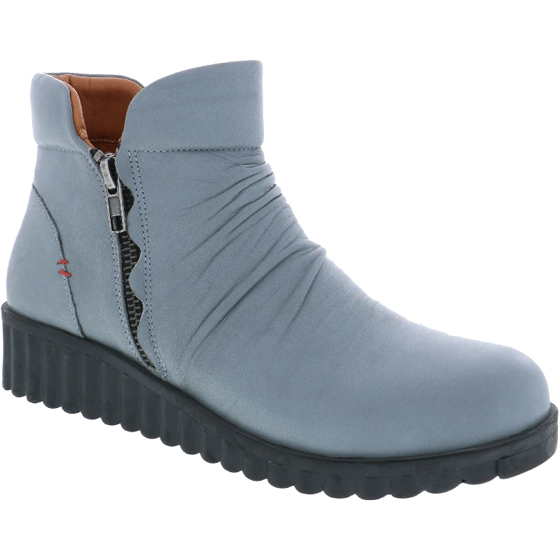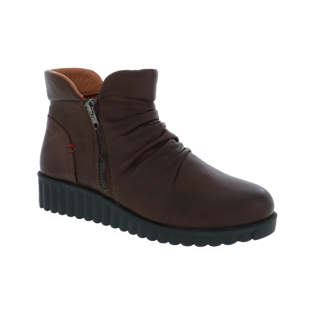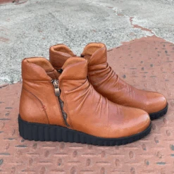 Meet Eve by Biza Shoes, this women’s bootie features a soft glove pleated leather that quite simply envelopes the foot in total comfort, no break in required. With a two functional exterior side zip design, you’ll love how effortless they are to wear. The lightweight durable textured rubber wedge outsole absorbs shock with every step.