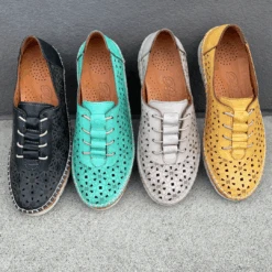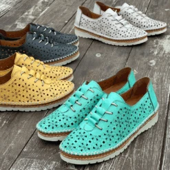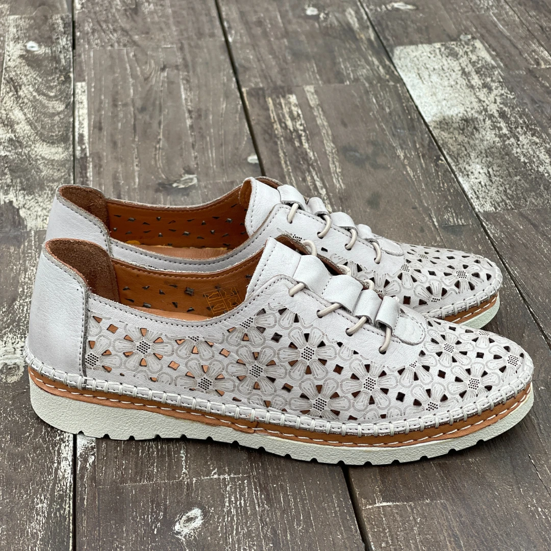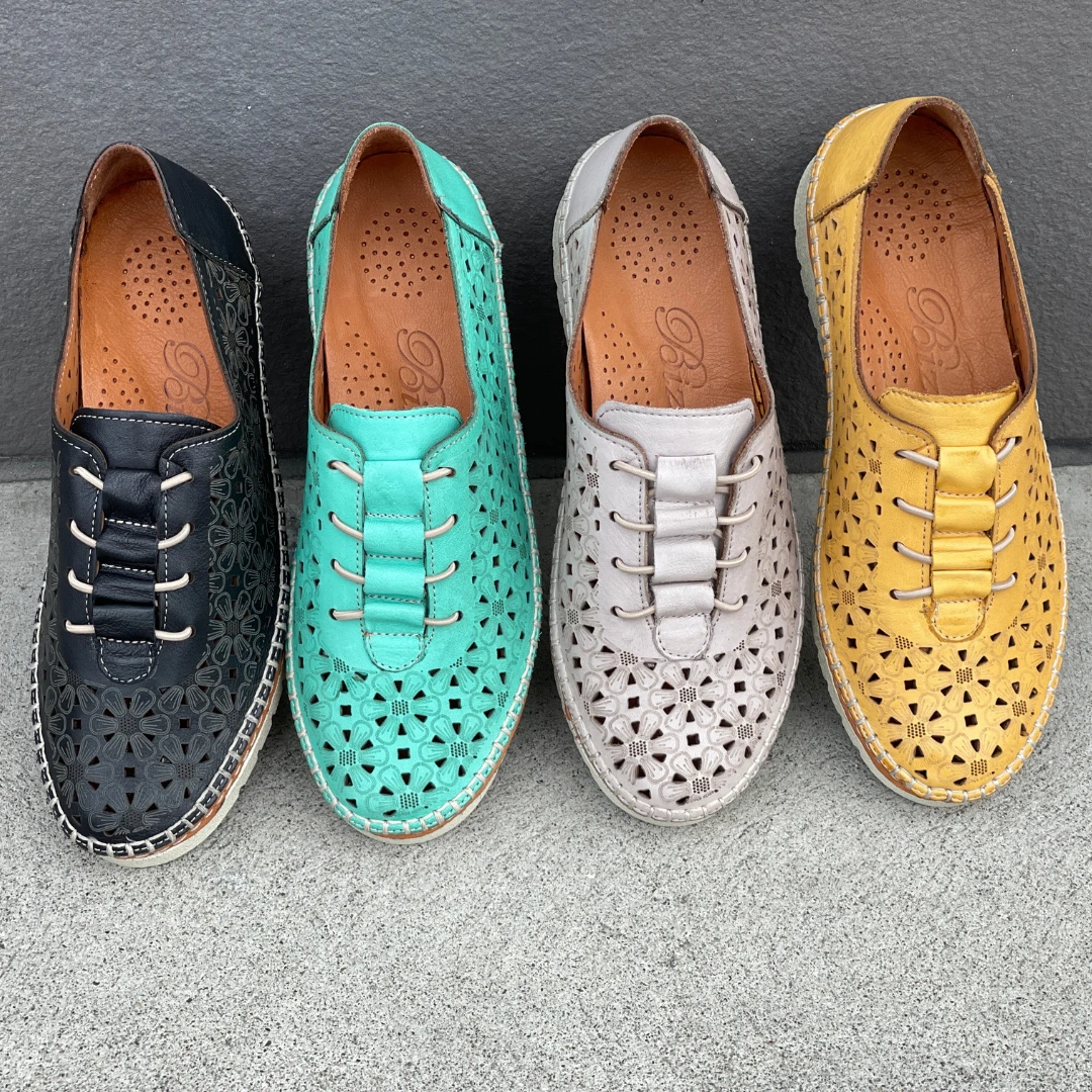 Let the Izzy by Biza Shoes put a smile on your face and pep in your step. This attractive women’s inspired moccasin lace-up loafer features unique handcrafted details with floral laser cutout designs all throughout. The leather lined interior keeps you cool and comfortable while the cushioned footbed absorbs shock with every step. The lightweight outsole and elasticized laces, ensure you get the perfect fit right out of the box, no break-in required.