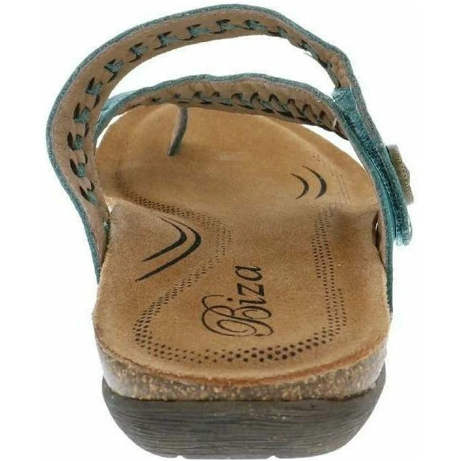 The Lexi sandal by Biza® Shoes is a vintage take on your women’s thong sandal with arch support. Featuring a suede covered cork and memory foam cushioned footbed for maximum comfort. This leather walking sandal has woven detailing throughout with hidden Velcro straps ensuring a perfect fit. Flip flop lovers will rejoice over this amazingly comfortable easy to wear slip on by Biza® Shoes.