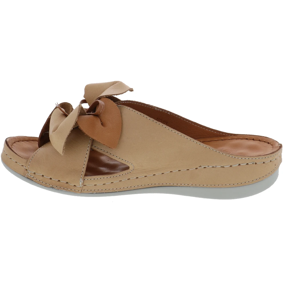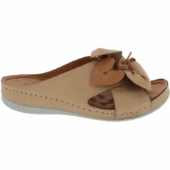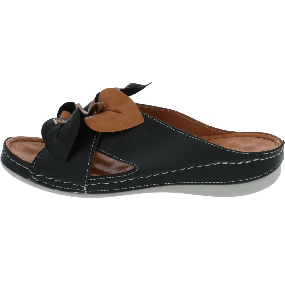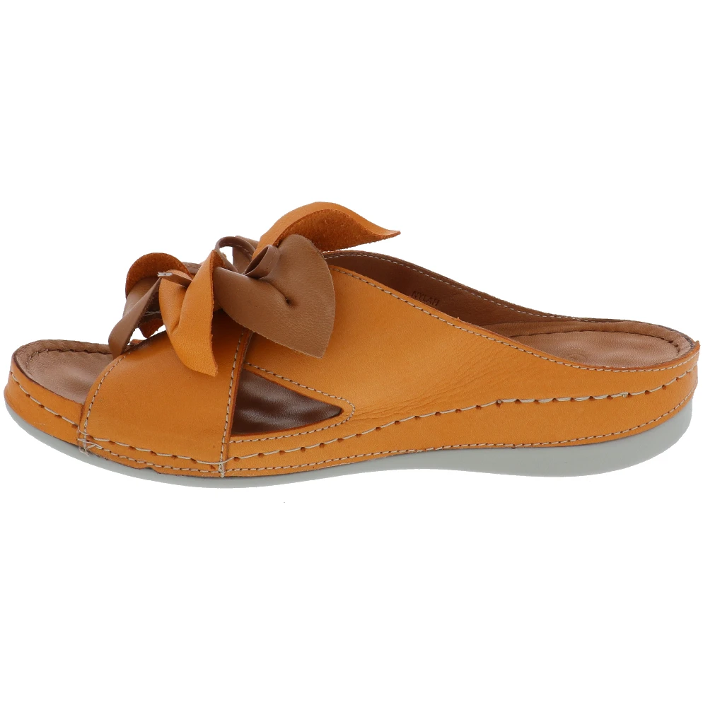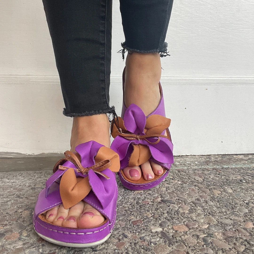 Live life in full bloom with the Nylah women’s sandal by Biza Shoes. This cheerful lightweight woman’s slip-on sandal features a two-toned floral leather embellishment stitched into a crisscross all leather design. The leather lined interior offers a cushioned pillow-like insole that absorbs shock with every step.