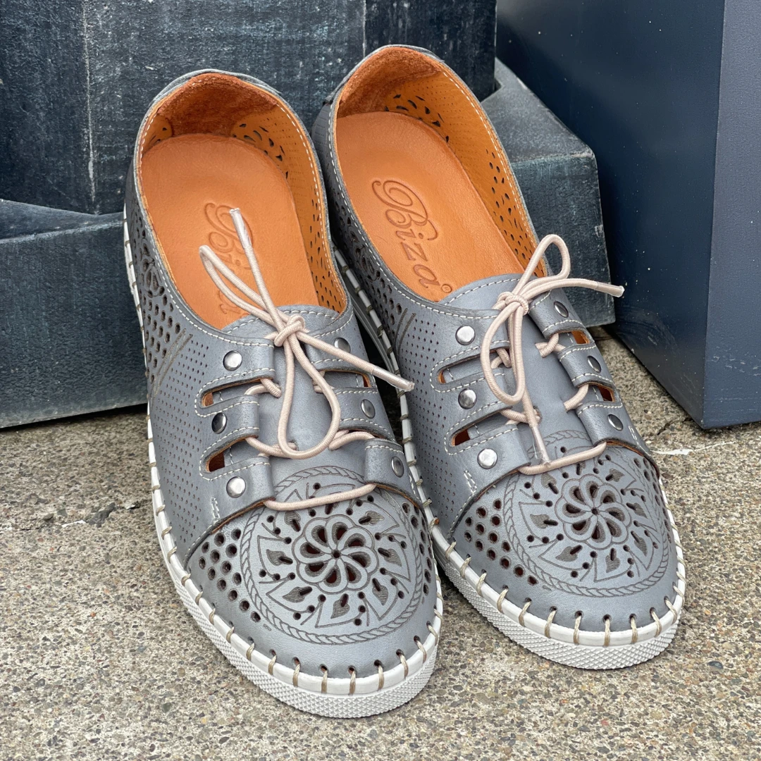 Versatile style and adjustability, the Petra by Biza Shoes is the perfect combination function and fashion. This timeless silhouette features stylish laser cut detailing throughout giving it a unique look all its own. The genuine leather lined interior and memory foam footbed, mold to the foot in total comfort. You’re going to love the ultra-flexible lightweight rubber outsole, sure to give you a little pep in your step.