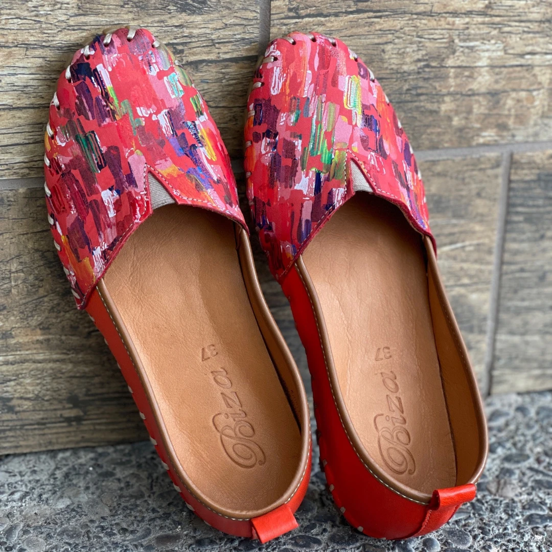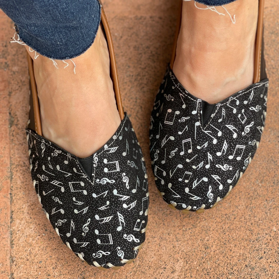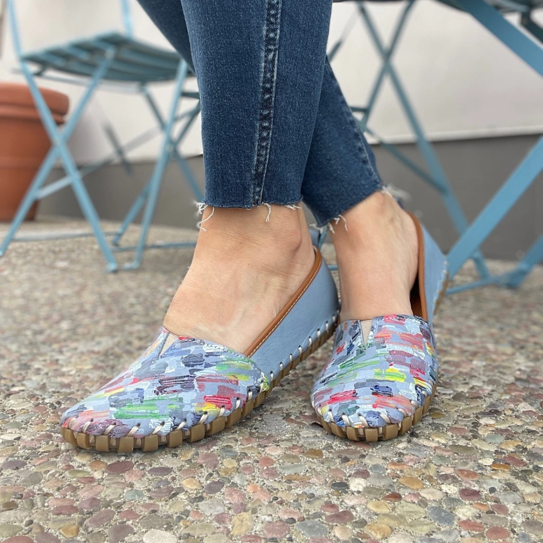 Hit just the right note on style and comfort with the Shirley by Biza Shoes. This artisan inspired women’s moccasin loafer features two unique stylish colorways, a music lovers printed leather design and a hand painted canvas leather for the budding artist in us all. With handstitched construction and unstructured comfort, this lightweight women’s shoe is sure energize your soul.