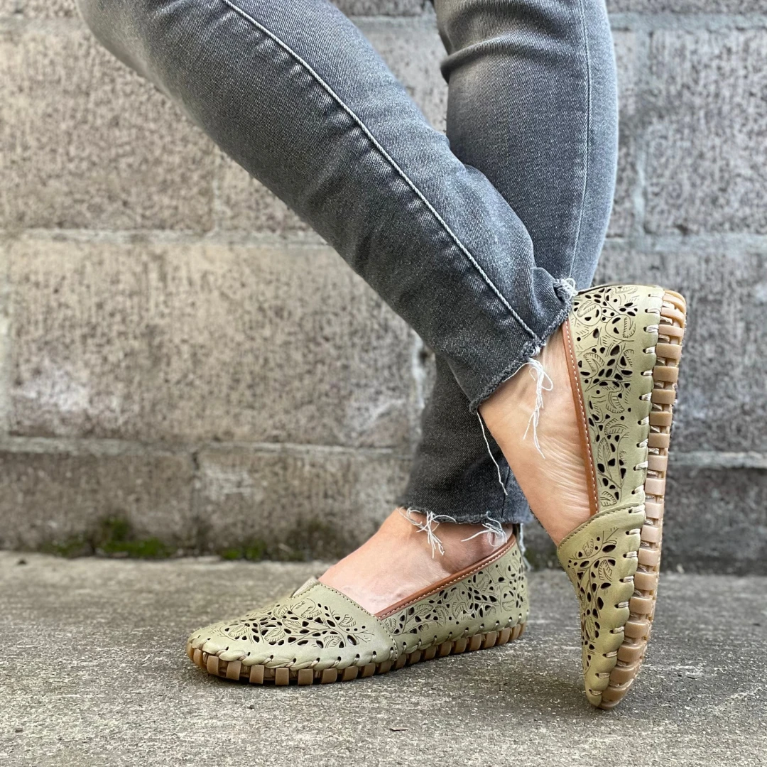 Enjoy effortless style with Sophie by Biza Shoes. This carefree women’s ultra-flexible slip-on loafer is perfect for any occasion, with unique laser cut detailing throughout, it’s sure to fit your on-the-go lifestyle. With artisan details like handstitched moccasin construction and a memory foam footbed for comfort, this unstructured lightweight women’s comfort shoe is sure to be your favorite go-to style.