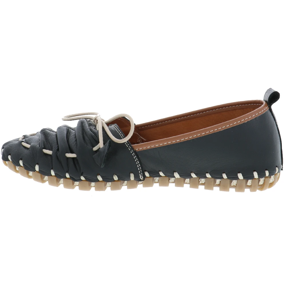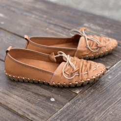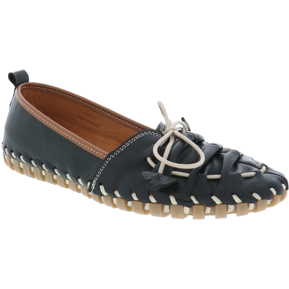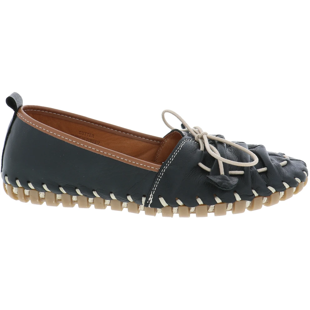 Slip on and go in the Sutter by Biza Shoes. This adorable women’s moccasin inspired loafer features gathered leather detailing across the foot with a functional elastic lace up design. You’re going to love the leather lined cushioned insole support as well as the unstructured feel of this amazing, handcrafted women’s walking shoe.