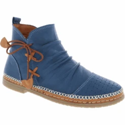 Step into unstructured comfort with this stylish lightweight women’s bootie by Biza. The Topaz is the perfect combination of style, and comfort. With a handstitched sole construction, and contrast stitch detailing, these comfort booties pop in all the right ways. The ultra-flexible rubber outsole, and shock absorbent leather lined foam insole, moves with your every step creating a barefoot-like feel.