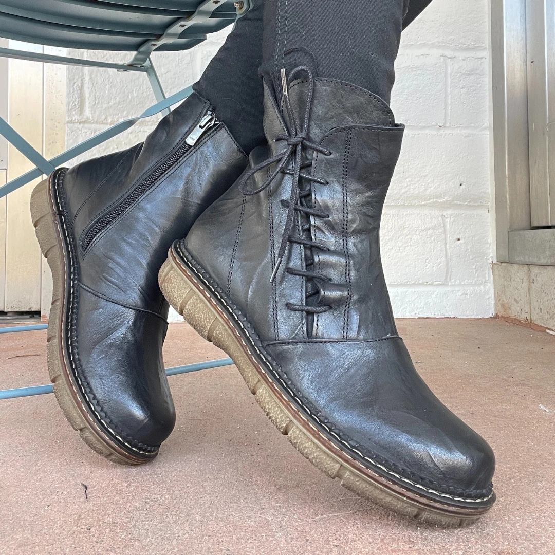 Meet the Utah women’s boot by Biza Shoes. This stylish all leather boot features a unique side stitch detailing with an interior side zip for easy on and off wearability. The soft fabric interior lining, leather lined cushioned insole and durable lightweight rubber outsole ensure you feel great with every step.