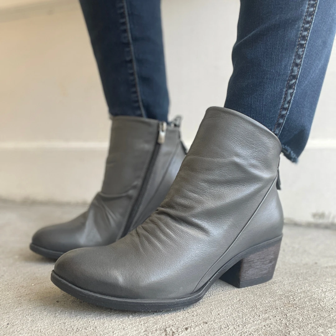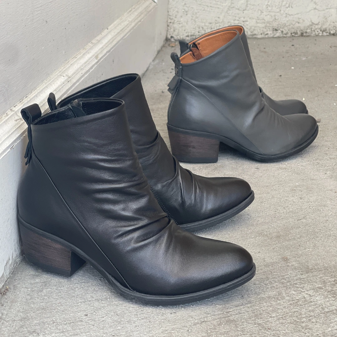 Crafted with premium leather uppers and a comfortable stacked heel, the Vita by Biza Shoes combines fashion and function for all day wear. This stylish western-inspired pleated boot features a convenient interior side zip for easy wearability. The leather lined cushioned insole and durable rubber outsole ensure superior comfort and support with every stylish step.