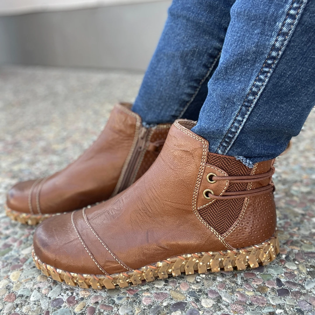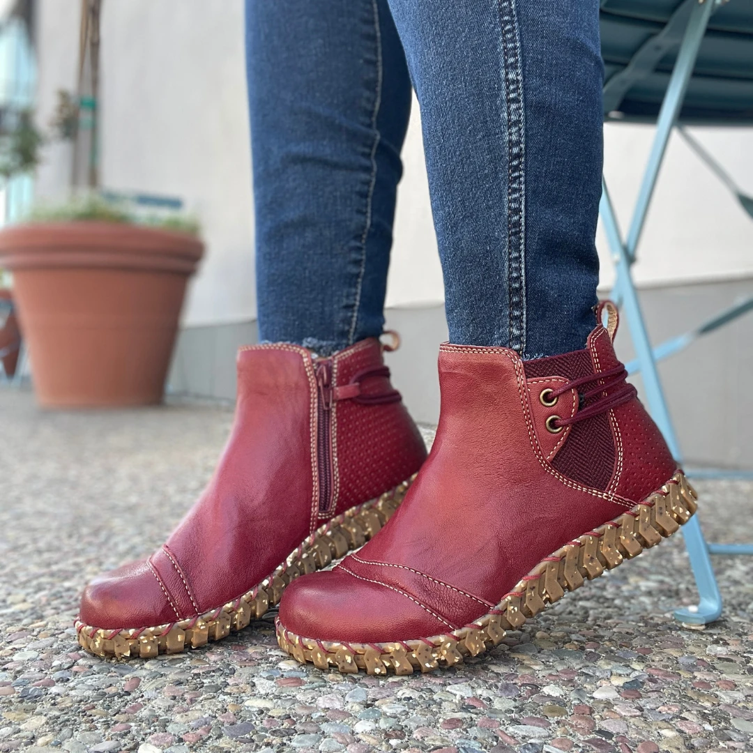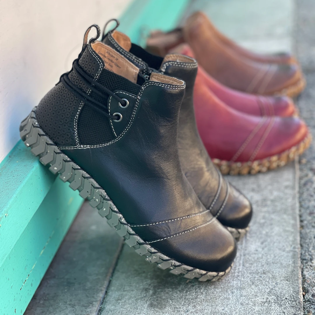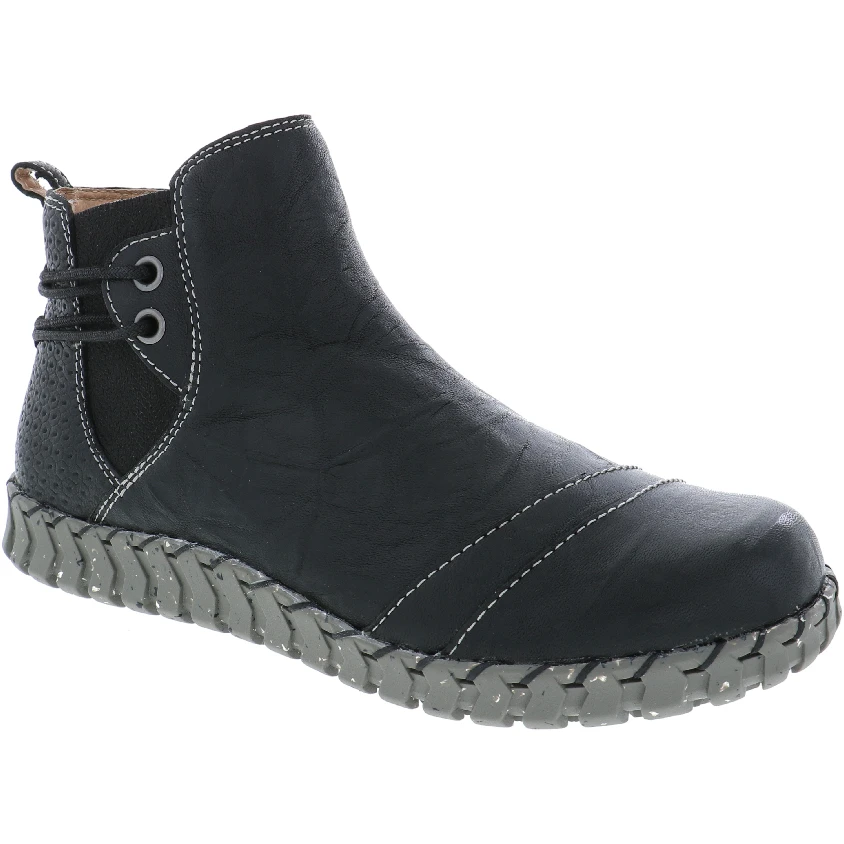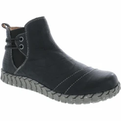 It’s all in the details with Whisper by Biza Shoes. This stylish women’s side zip bootie features a double stitched toe box design and embossed leather heel counter with modern elastic detailing. The flexible and durable rubber outsole ensure comfort every step of the way.
