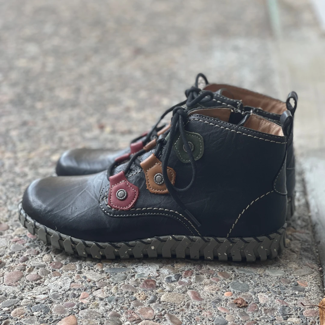 With handcrafted artisan details, the Wynter boot by Biza Shoes is sure to be your go-to walking lace-up bootie. This stylish women’s boot features an interior side zip design along with functional lace, ensuring a perfect fit. The removable memory foam injected cork insole and durable rubber outsole, allow for comfort with every step.