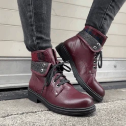 This retro-inspired women’s short lace-up boot by Freefoot, features a stylish folded sweater knit collar design that is sure to add a lot of style to any outfit. You’re going to love the low-stacked rubber outsole for durability and support.