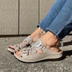 Enjoy soft stylish slip-on comfort with Jaylee by INCa. This lightweight all leather women’s sandal features a floral cutout design with unique woven leather detailing. The polyurethane outsole and plush foam insole absorbs shock and creates a pillowlike comfort with every step. The perfect travel companion, this stylish sandal is sure to take you places.