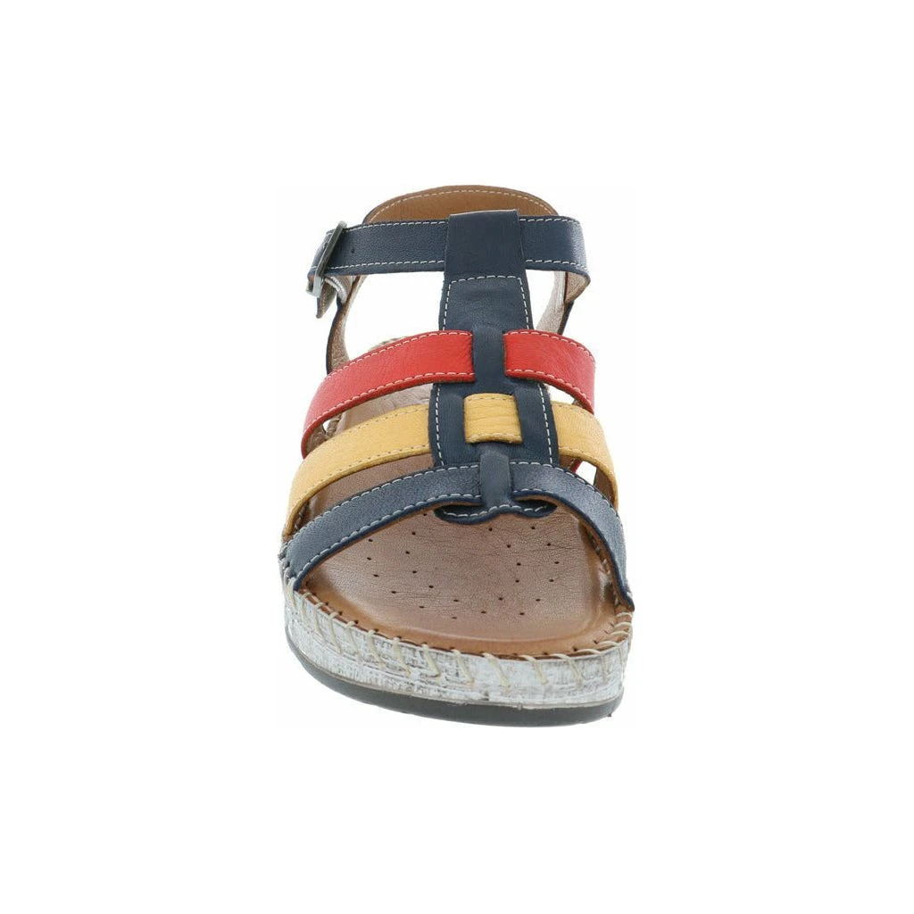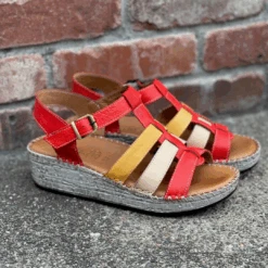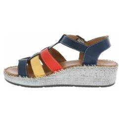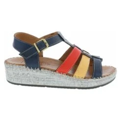 This women’s fisherman inspired sandal features three woven multi-colored straps and an adjustable instep strap. With contrast hand stitched detailing, this sandal can easily be dressed up or worn casually while supporting the foot in total comfort. The polyurethane outsole and plush foam insole absorbs shock and creates pillowlike comfort with every step.