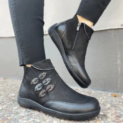 Slip on and go in the stylish Georgia by Mago Shoes. This adorable double elastic gore pull-on women’s bootie features a flexible rubber outsole with comfort cushion throughout helping to move you forward effortlessly. With modern details, this attractive walking boot is sure to be one of your new favorites.