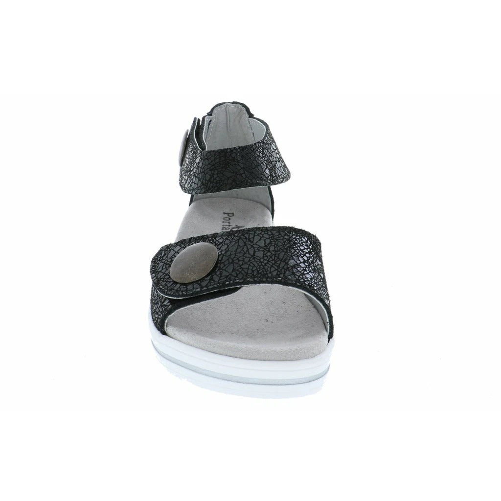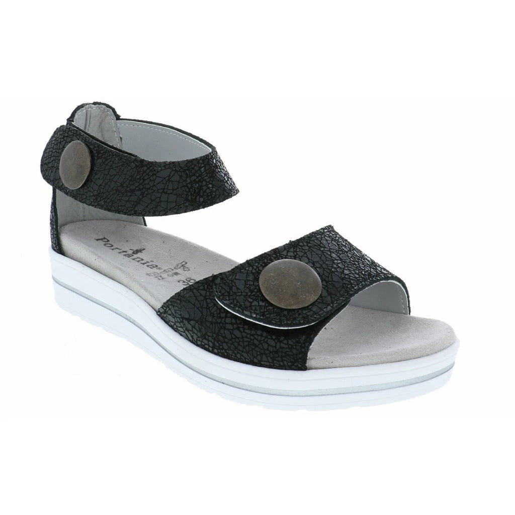 Step up your sandal game in the new stylish Hazel 32 by Portania. This attractive women’s walking sandal features two fully adjustable Velcro straps and a removable shock absorbent polyurethane footbed. With fashionable printed leather uppers and a flexible outsole, this adorable sandal is sure to keep you moving forward in modern comfort.