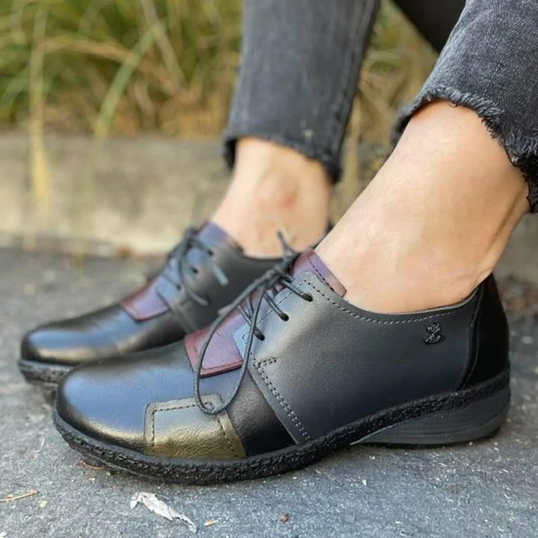 Patchwork detailing and stylish color blocking give this versatile women’s walking shoe by Venus a look all of her own. This artistic inspired genuine leather walking shoe features a plush cushioned removable insole and durable shock absorbent outsole.