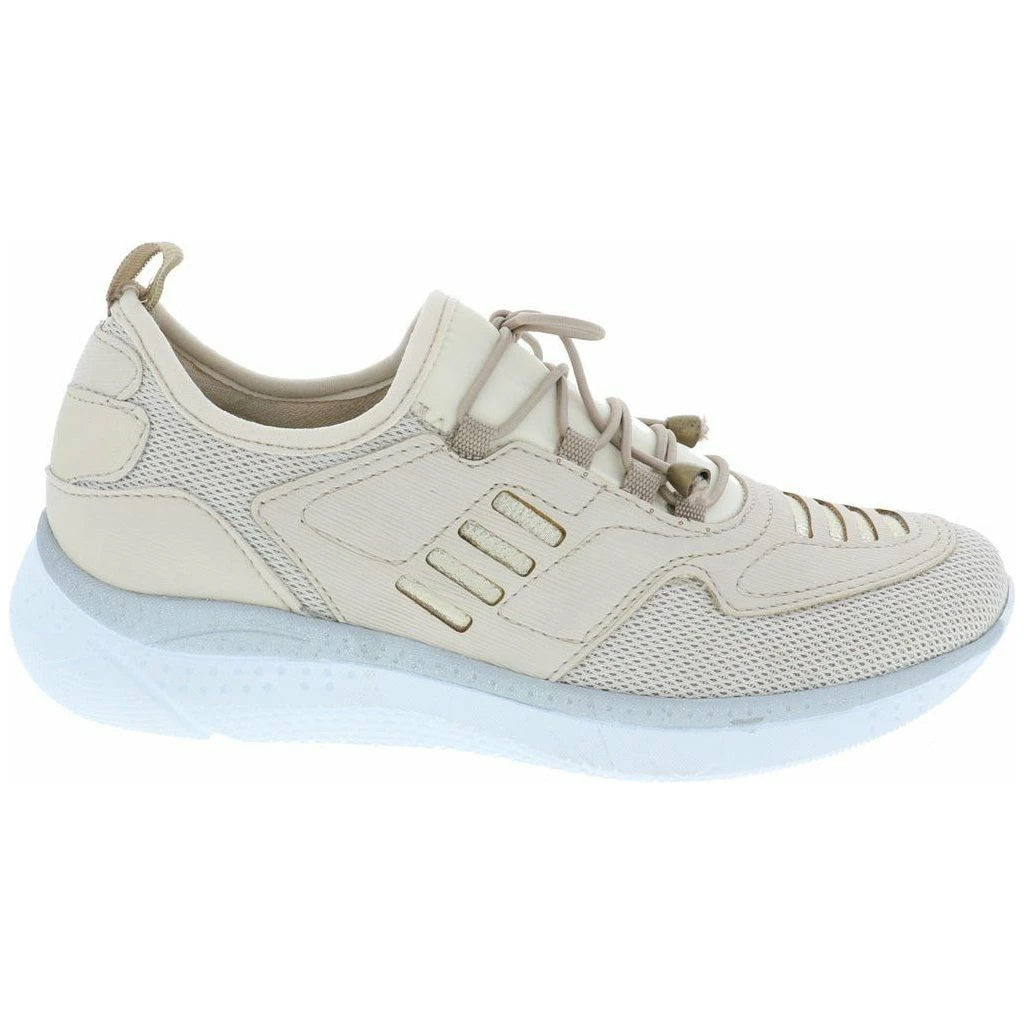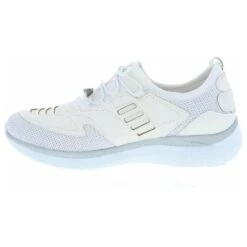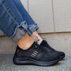 Lace up and go in this stylish slip on women’s walking shoe by Venus. This fabric and mesh light weight sneaker features a modern design with unique lines and details. The removable plush cushioned insole absorbs shock and can also accommodate a personalized orthotic. The polyurethane outsole is light weight and durable keeping you moving ahead in stylish comfort.