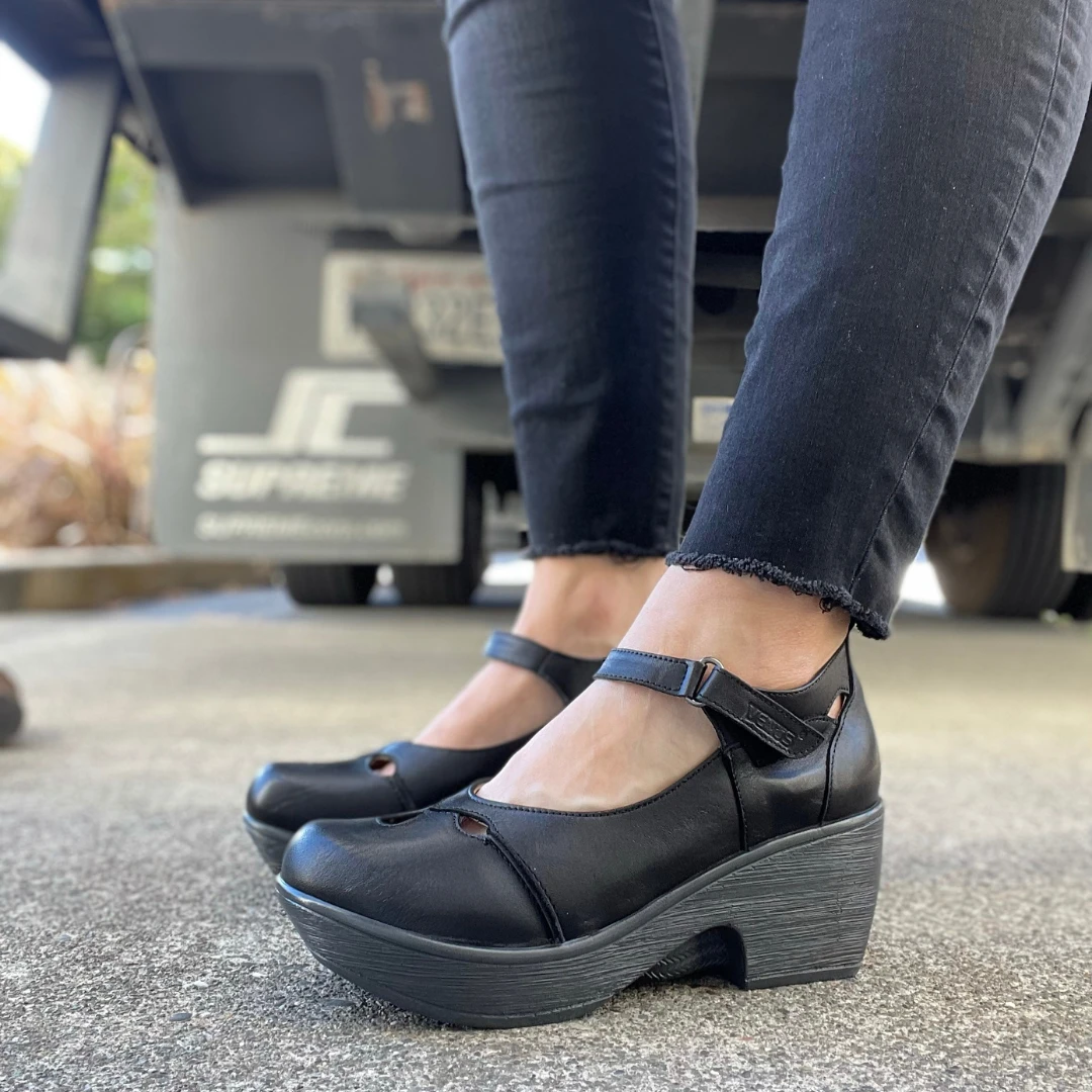 Add a little lift to your stylish comfort with this adorable women’s platform Mary Jane wedge by Venus. You’re going to love the versatile design that can easily be dressed up for the office or down for a weekend of fun. The instep strap is fully adjustable with a hook and loop Velcro closure ensuring a perfect fit every time. This light weight style features genuine leather uppers and memory foam support for added comfort.
