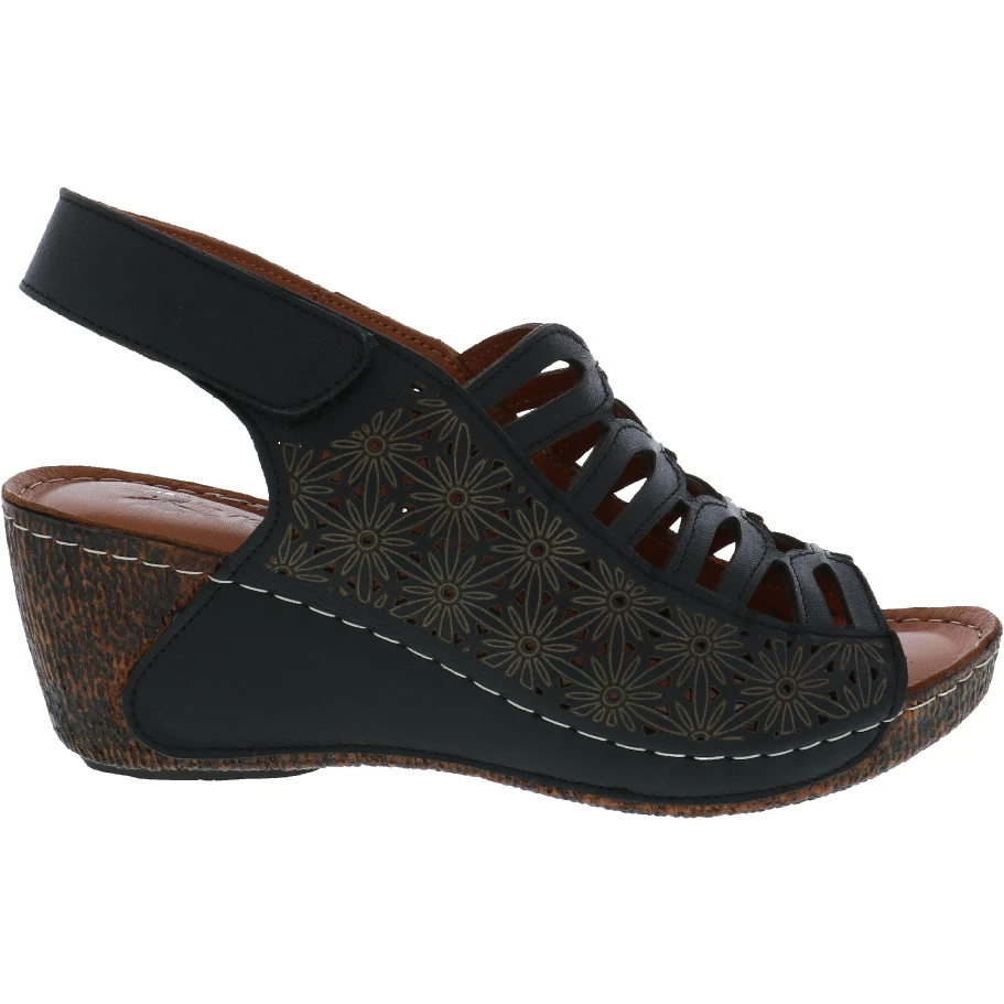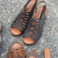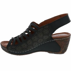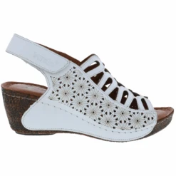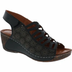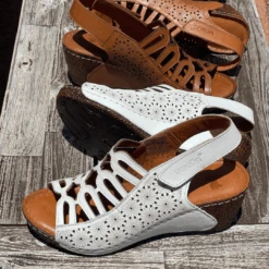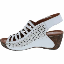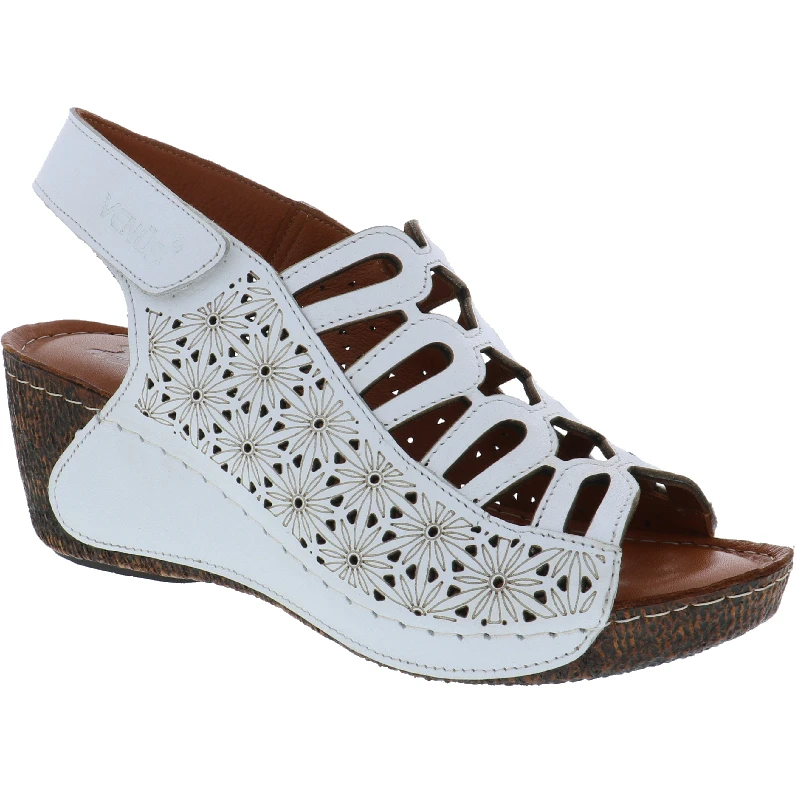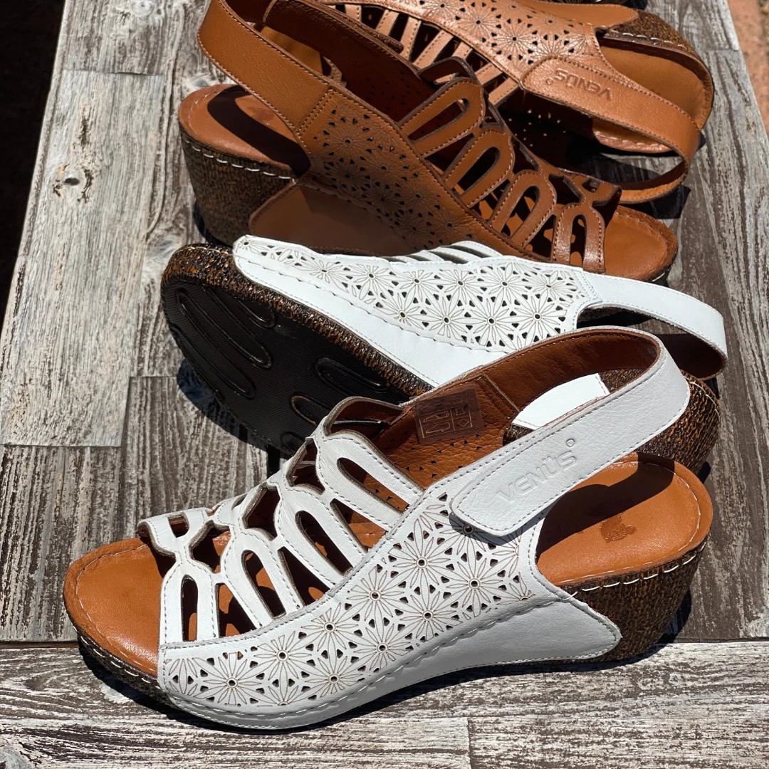 It’s all in the details and this adorable women’s sandal by Venus boosts confidence and style. The all leather upper features a unique cutout design across the top of the foot while the floral and laser cutout detailing hugs the foot in total comfort. The back strap has a hidden Velcro piece ensuring your get a perfect fit every time. The ultra-light weight wedge construction is extremely shock absorbent while the plush leather lined insole will cushion your feet with every step.