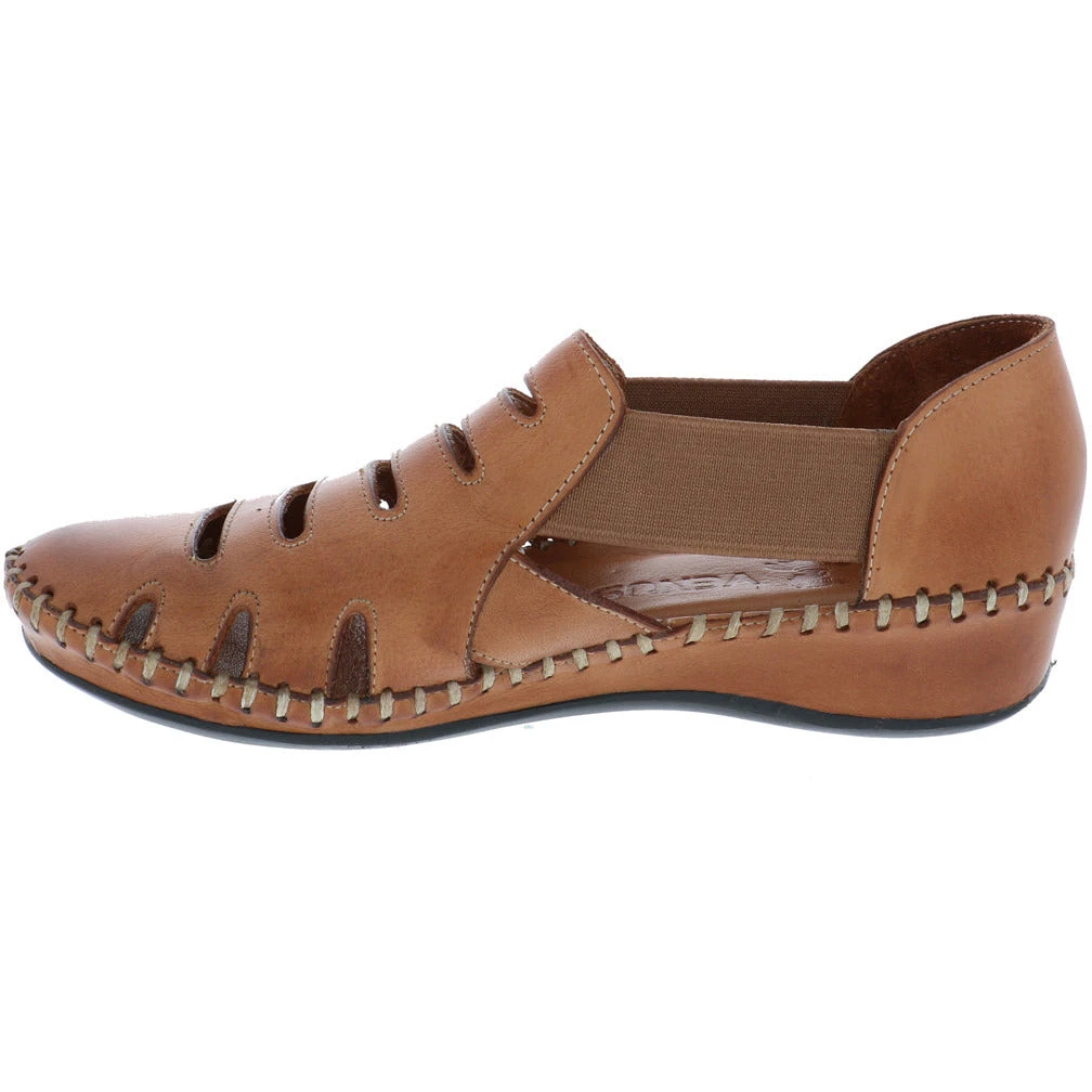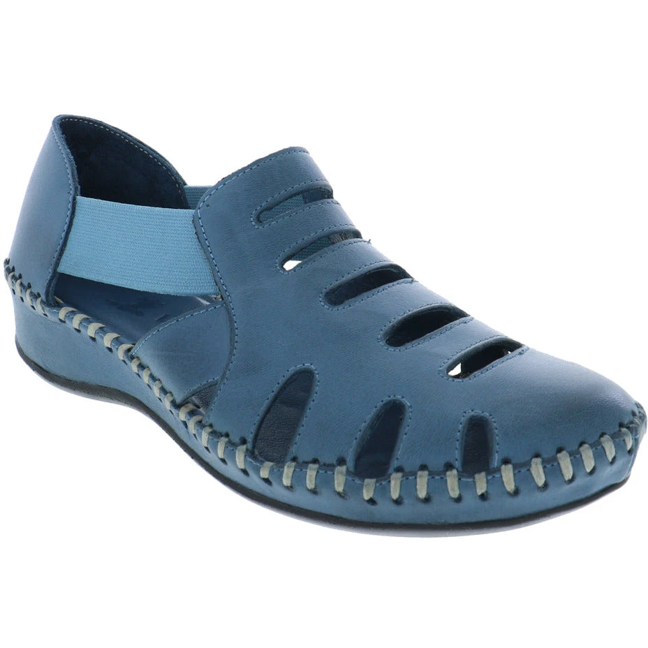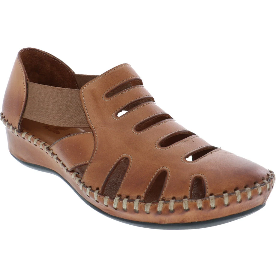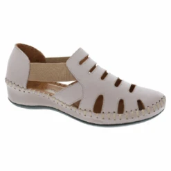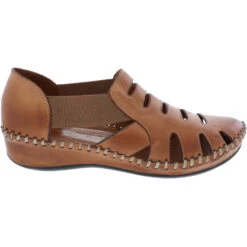 The ultimate slip on loafer sandal is here and you’re not going want to miss it! This women’s casual flat by Venus Footwear fits like a dream with stylish leather cutouts throughout and matching elastic bands for comfort and wear ability. The moisture-wicking leather footbed is cushioned for comfort and flexible rubber outsole absorbs shock with every step.